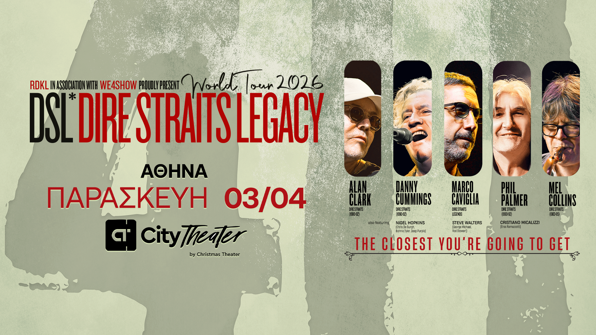 Ένα άπιαστο όνειρο και τεράστιο απωθημένο για το ροκ ακροατήριο της χώρας κατακτήθηκε προ διετίας με την παρθενική εμφάνιση των DIRE STRAITS LEGACY στη χώρα μας. Η τεράστια όμως ζήτηση ήταν αδύνατο να ικανοποιηθεί, το μαζικό αίτημα για επανάληψη εισακούστηκε και το supergroup επιστρέφει στη χώρα μας για μια σειρά ξεχωριστών εμφανίσεων σε θεατρικούς χώρους καθήμενων. Η μοναδική αυτή ευκαιρία για να απολαύσουμε ζωντανά μερικά από τα σπουδαιότερα rock τραγούδια που έχουν γραφτεί ποτε αποκτά πλέον άλλη δυναμική και προσφέρεται με τις καλύτερες δυνατές συνθήκες θέασης και ακρόασης.